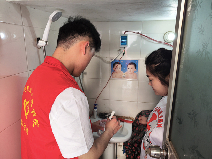 “您家用水情况怎么样?每月水费多吗?”“您知道有哪些节水小妙招吗?”“您对世界水日、中国水周有了解吗?”……材药学院的青年志愿者们身穿红马甲,手持节水科普宣传单,穿梭在人群中,向花果山居民朋友们普及科学用水知识,用贴近群众生活的宣传方式向大家介绍了连云港市的水资源分布、我国面临的水危机、节水小妙招等知识,引导群众树立节约用水、文明用水、科学用水的意识。随后志愿者们来到居民家中,利用TDS检测笔、HP试纸为居民们的生活用水提供免费检测服务,针对检测出杂质过高的情况给出合理建议。