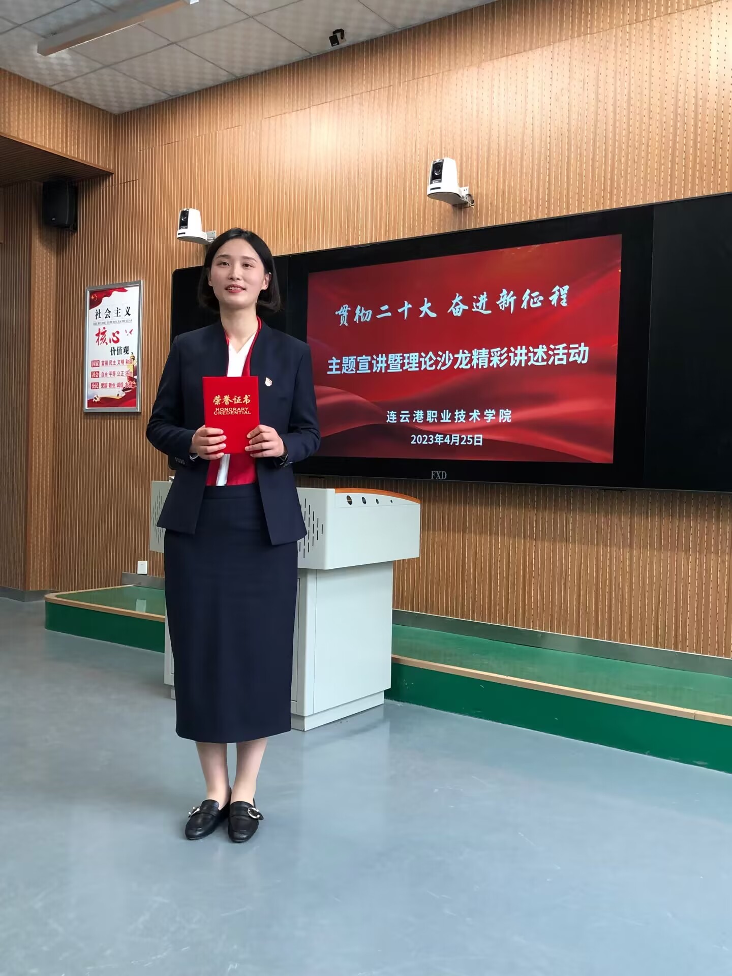 4月25日,我校举办“贯彻二十大 奋进新征程”主题宣讲暨理论沙龙·精彩讲述活动。来自各院部的11名青年师生参加了比赛。经过激烈角逐,我院党总支副书记、关工委副主任孙明珠获得一等奖。