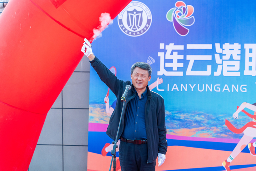 (来自锦绣江苏“相遇连职院”交流营的美国师生参与体育文化节趣味校园跑活动)