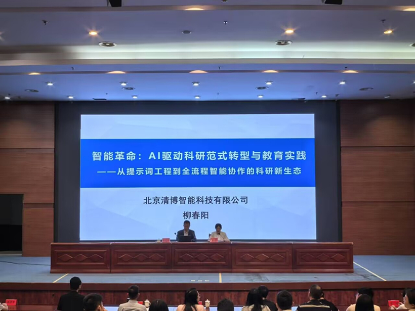 9月8日下午,我校在图书馆报告厅举办“智能革命:AI驱动科研范式转型与教育实践——从提示词工程到全流程智能协作的科研新生态”专题讲座,清博AI元宇宙研究室主任、高级系统分析师、北京建筑大学校外导师柳春阳受邀主讲。讲座由副校长张萍主持,市哲学社会科学界联合会副主席韩冠旗,学校科产处、质监处及信息工程学院负责人和150余名教师参加了本次讲座。