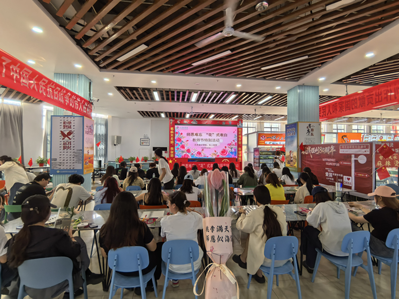 秋阳杲杲,师恩煦煦。在第41个教师节来临之际,为表达对教师们的敬意与感激,东二食堂(江苏康健餐饮)携手“艺旅阳光”非遗传习社举办了一场别开生面的教师节特别活动——“花”式感恩教师节。本次活动不仅展现了学生们对老师的深情厚谊,也体现了后勤管理处三全育人的服务理念。