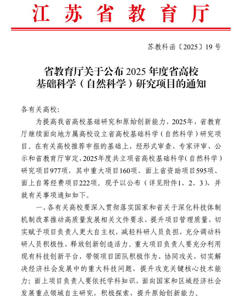 近日,江苏省科学技术协会下发《关于公布2025年江苏省青年科技人才托举工程资助对象名单的通知》(苏科协发﹝2025﹞105号),我校机电工程学院钟浩博士成功入选。同时,根据江苏省教育厅下发的《省教育厅关于公布2025年省高校基础科学(自然科学)研究项目的通知》(苏教科函﹝2025﹞19号),钟浩博士申报的《基于无人机多模态遥感的森林碳储量与生长变化监测研究》获批省高校基础科学(自然科学)研究面上项目。