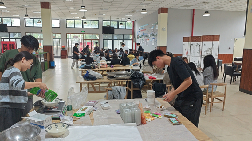 中秋承载着中华民族“团圆和睦”的优秀传统文化基因,对于远离家乡求学的学子而言,这份思念更显绵长。为让师生在实践中触摸传统温度,更让在外学子感受“第二故乡”的温情,9月23日下午,教工食堂联合信息工程学院重磅推出“冰皮月饼DIY,解锁中秋新‘食’尚”主题活动。这场以月饼制作为纽带的实践课,将传统饮食文化与现代创意深度融合,60余名学子齐聚一堂,在动手实践中凝聚情感、厚植文化归属感,让异乡的中秋也满溢家的暖意。