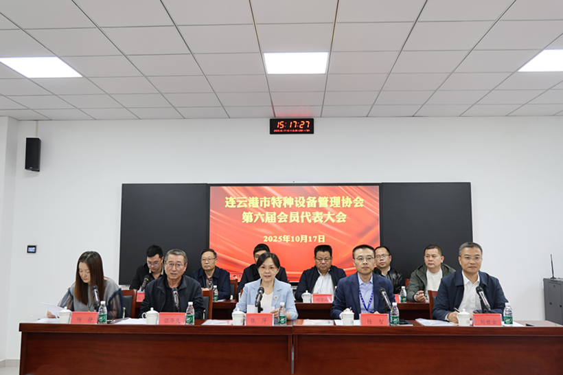 10月17日,连云港市特种设备协会第六届会员代表大会第一次会议在我校顺利召开,大会选举产生了新一届理事会及领导机构,我校当选为理事长单位。市市场监督管理局杨智处长,以及来自全市特种设备生产、检验检测、使用、维保等领域的50余家会员单位代表齐聚一堂,共同见证协会发展进程中的重要时刻。我校副校长张萍、继续教育管理处负责人出席会议。会议由协会秘书长杨静主持。