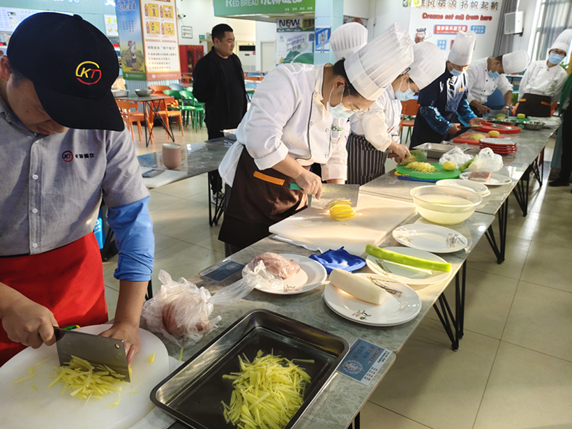 11月14日下午,连云港职业技术学院东二食堂大厅内香气四溢、热闹非凡,一场以“岗位大练兵、技能大比拼”为主题的厨艺比赛在此精彩上演。本次比赛聚焦刀工与面点制作两大核心技能,来自校内5家食堂的参赛厨师们同台竞技,以精湛技艺展现后勤餐饮队伍的专业风采,为全校师生呈现了一场视觉与味觉的双重盛宴。