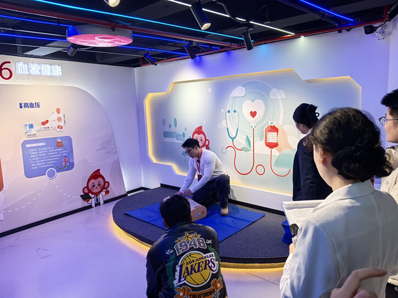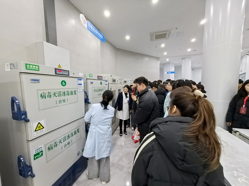 活动伊始,江荣代表市中心血站对我校师生的来访表示欢迎,并简要介绍了本次活动的相关安排。随后,以《一袋血的旅程》为主题,学员们在血站工作人员的带领下,围绕“为什么要献血”“献血影响健康吗”“献血能帮助到哪些人”等核心问题,依次对“初识血液”“血液循环”“血液探秘”“血型科普”“‘救’在身边”“血液健康”等知识模块进行了系统学习。在检验实验室和成分制备科,学员们现场观摩了血液从采集到入库的完整流程,进一步认识到无偿献血背后的专业保障与责任担当。在互动交流环节,学员们就献血年龄限制、献血间隔时间、特殊人群献血要求等问题与专家老师积极探讨,并在专业医护人员的指导下学习演示了心肺复苏等急救技能。