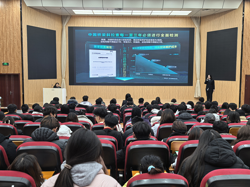 顾亚雯老师从2025年省赛主旨、人才培育目标、评审规则三大核心维度,全方位深度解读赛事体系。她结合今年指导获省赛二等奖的《索卫者--新型多模态桥梁斜拉索智能检测机器人》项目,从政策赛事解读、项目选题孵化、材料准备呈现、路演答辩实战四个方面,为师生提供可借鉴的实践路径。团队负责人范诗涵同学现场路演,生动演示、细致讲解,还原项目成长历程,直观呈现路演答辩技巧,让师生沉浸感受双创魅力。