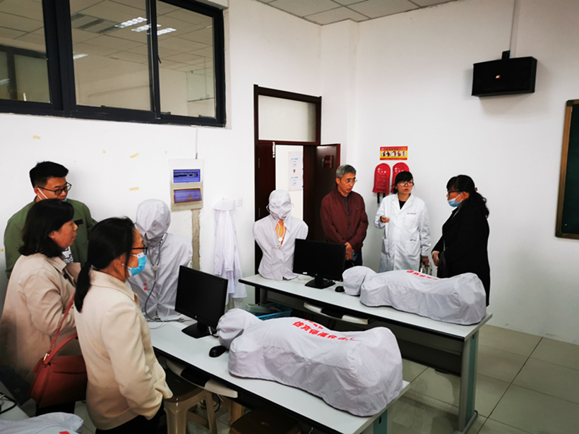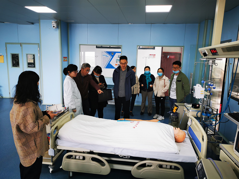 随后,在护理学部人员的陪同下,我院一行7人参观了护理基础实训室、内护教学实训室、健康评估室、社区模拟病房和儿童保健病房、老年模拟病房等。在参观过程中,我院老师与护理学部老师就实验室建设方面进行了认真交流。