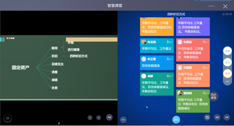 赵然根据会计学科专业特点,积极构建“课前-课中-课后”无缝衔接的线上教学模式。课前,赵然利用超星平台上传小米商标“天价”设计费案例,并通过发布课前主题讨论引出授课内容,同时运用“词云”功能让学生们对晦涩的“无形资产”一词有了初步认知。课中,赵然运用随堂练习功能和连麦功能,实现“做”“学”结合,实时获得线上教学反馈。同时,赵然在学科教育中融入课程思政理念,将无形资产是典型的著作权这一案例和大学生毕业论文代写抄袭现象相结合,告诫学生要诚实守法、诚信为本、遵循准则,保证会计信息的真实可靠。课后,赵然运用超星平台发布章节测验,结合平台生成的图表进行成绩分析,从而直观了解学生对知识点的掌握情况,有针对性地开展学习答疑,并据此改进教学方式、调整教学进度。