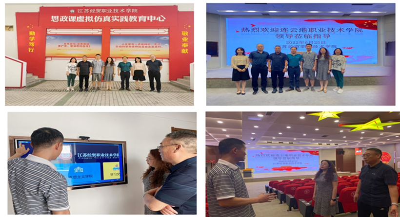 暑期伊始,夏日炎炎,为推进思想政治理论课的改革发展和提质增效,筹备智慧教学实践基地建设,探索思想政治理论课实践教学新模式,6月25日至27日,马克思主义学院直属党支部书记、主任张蕴,副主任陈金生和教学骨干代表赴江苏经贸职业技术学院和无锡商业职业技术学院的马克思主义学院开展参观学习活动。