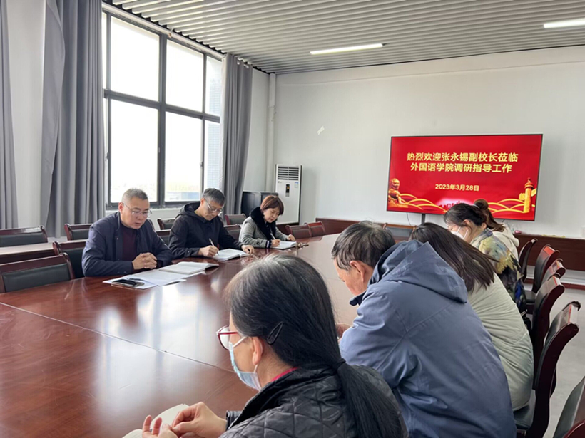 3月28日上午,张永锡副院长到外国语学院调研。外国语学院领导班子、科级干部、教师代表参加了座谈会。