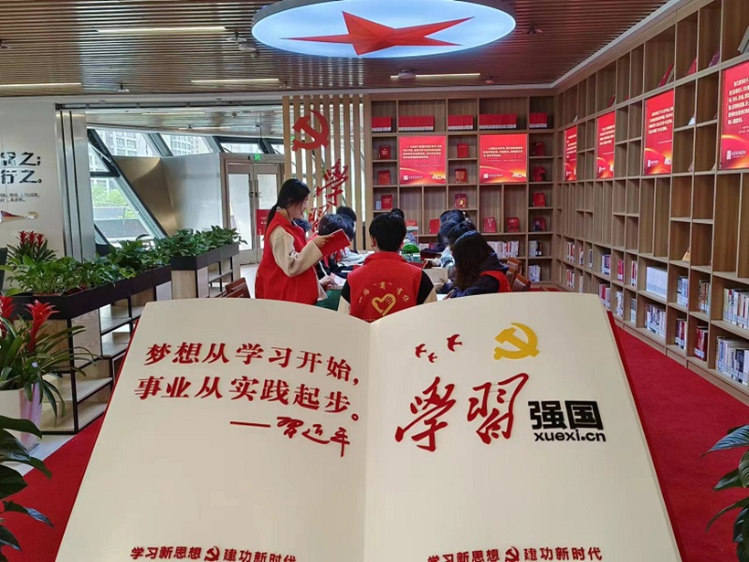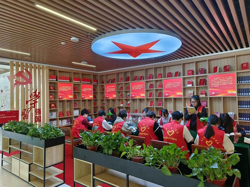 在市图书馆“阅美连图﹒强国有我”线下体验空间,同学们从红书墙选取了《青春之歌》《薪薪之火可以燎原》《红色家书》《习近平的七年知青岁月》等红色书籍,诵读精彩选段,分享读书心得。同学们踊跃发言,以饱满的热情、昂扬的精神状态,从多个角度解析红色经典,让经典重焕光彩,给在场的每一个人带来精神上的洗礼。活动期间气氛热烈有序,展现了商院学子积极进取、努力拼搏的良好精神风貌。大家纷纷表示,要继承党的光荣传统,发扬党的优良作风,不忘初心使命,传承红色基因。阅读分享结束后,同学们又开展了志愿活动,对图书馆的书籍进行整理归放。