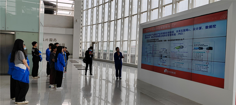 在康缘药业数字化提取精制工厂现场,企业讲解员详细介绍了如何基于数字化工厂系统模型和核心数据库去实现中药复杂体系生产全过程智能化、数字化的跟踪追溯,并带领学生参观了现代化生产车间和数据信息控制中心,近距离感受井然有序智能化设备背后紧密交织的工业互联网高精尖技术。随后,现任康缘药业营销运营部经理、我院2001级优秀校友王兵向在场的同学们分享了自己成长历程和奋斗感悟,并以“过来人”的身份鼓励学弟学妹们要认真学习专业知识,科学地规划大学生涯,积极参加企业实践,努力提升核心竞争力,在奋斗与担当中实现人生理想。