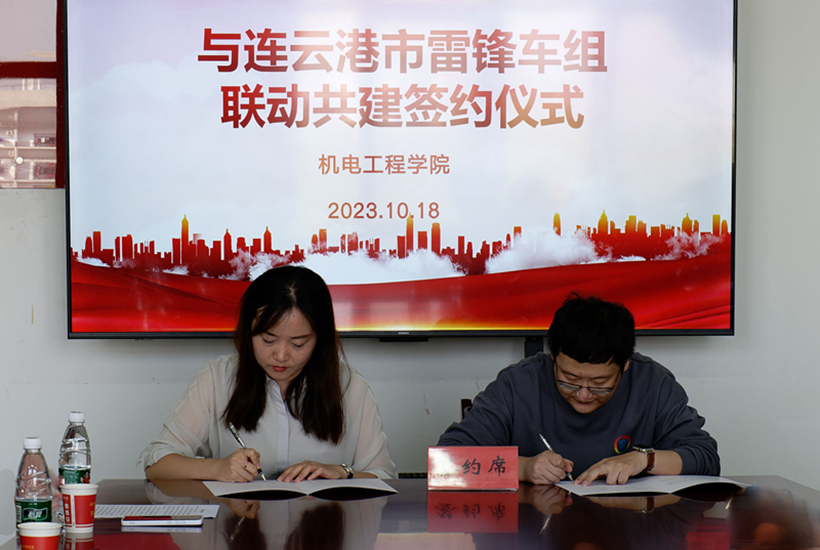10月18日,在喜迎建校40周年之际,机电工程学院与“雷锋车”组联动共建签约仪式在机电工程学院会议室举行。机电工程学院2010届毕业生、 全国人大代表、连云港汽车总站副站长、“雷锋车”手于丽婕,机电工程学院党政班子成员,部分师生代表,校友代表参加签约仪式。签约仪式由机电工程学院党总支副书记李红军主持。