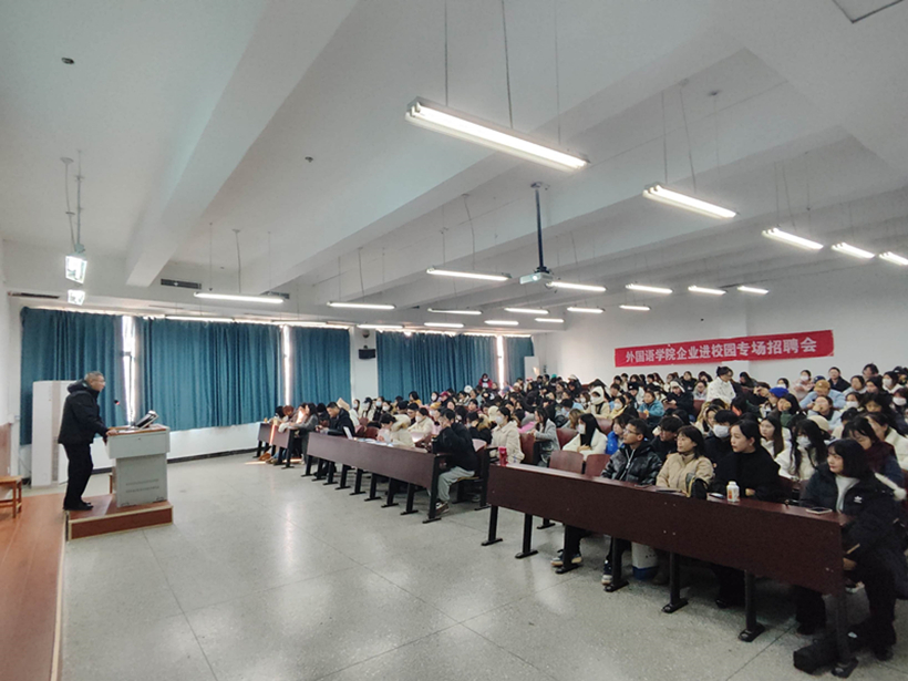 1月5日下午,外国语学院在致远楼227教室举办2024届商务英语、应用韩语专业毕业生专场招聘宣讲会。外国语学院党总支书记王卫红,毕业班班主任、辅导员,相关企业人事负责人出席宣讲会,2024届毕业生一百余人参加。