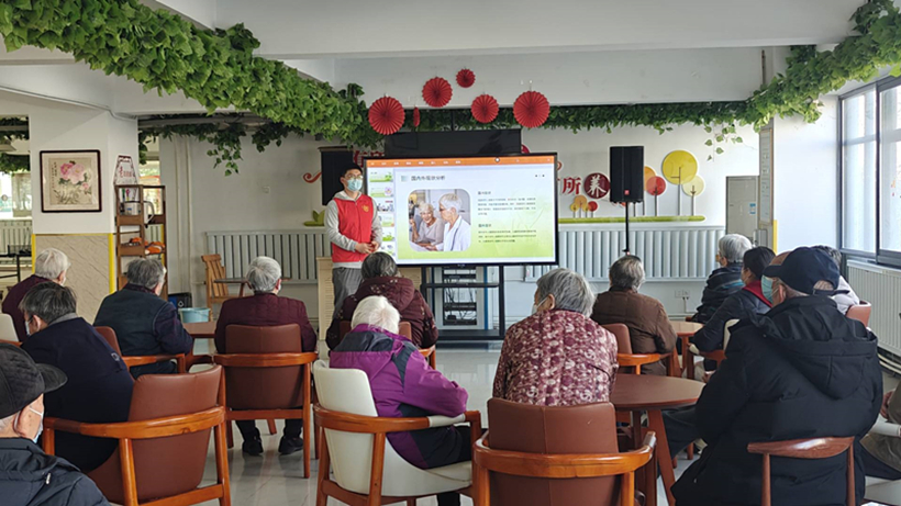 活动当天下午,志愿者们早早来到养老院,和工作人员交流后便立刻行动起来。同学们协助工作人员清扫地面、擦拭桌椅、清理垃圾……大家忙碌的身影不停地穿梭在养老院的每个角落,平日里清静的养老院一下子热闹起来。清扫结束后,同学们打开精心准备的PPT,生动形象地向老人们宣讲健康知识,主要包括老年人常见疾病与预防、营养与饮食调整、如何科学锻炼、心理健康实用技巧等多个与老人身心健康密切相关的内容,希望通过宣讲向老人们传达关注身心健康、安度幸福晚年的生活理念,让老人感受到温暖和希望。为了加强宣讲效果,同学们还以互动问答、发放小礼品的形式,很好地调动起现场老人参与的积极性。活动最后,志愿者们带领全体老人共做头部按摩操,伴随着舒缓的音乐和同学们轻声细语的指引,老人们舒服地闭上了眼睛,平静地享受这份温暖与美好,每个人的脸上都洋溢着幸福的笑容。通过这次活动,志愿者们和老人培养了深厚的感情,志愿者纷纷表示“看到这里的老人就想到了自己的爷爷奶奶,感觉十分亲切”,福利院的老人对同学们的到来也十分开心,有位老人说:“看孩子们围坐跟前,就像自己的孩子一样,真好,谢谢这些可爱的孩子们。”