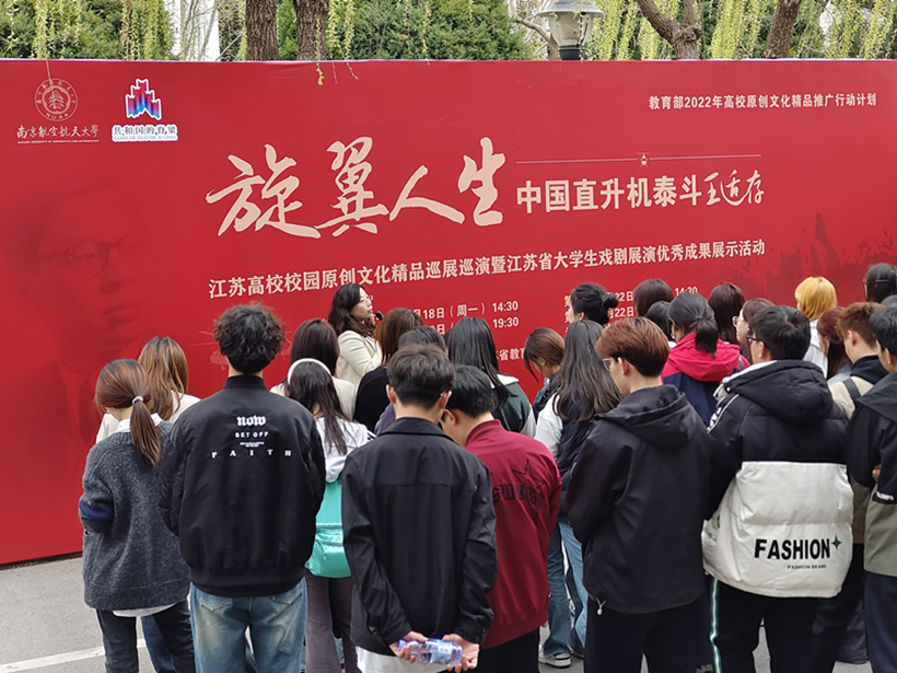 话剧《旋翼人生——中国直升机泰斗王适存》由南京航空航天大学精心打造,是江苏省首部且唯一一部入选中国科协“共和国的脊梁——科学大师名校宣传工程”剧目。该剧生动励志的剧情和南航师生的精彩表演,成功塑造了王适存教授坚韧不拔、勇于创新的形象,再现了他呕心沥血、无私奉献的一生,呈现出一堂沉浸式的党史学习课、生动的爱国主义教育课、跨时空的精神传承课、有温度的直升机专业科普课和导论课。