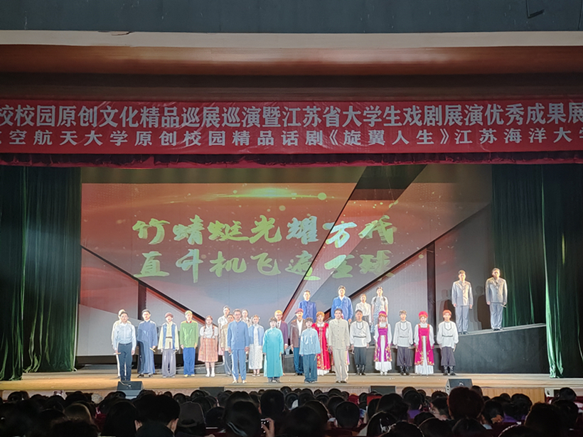 “竹蜻蜓光耀万代,直升机飞遍全球”。为发扬以爱国主义为底色的科学家精神,推动深入落实“时代新人铸魂工程”,3月22日下午,艺术与旅游学院党总支、关工委和团委组织100余名师生到江苏海洋大学参加江苏高校校园原创文化精品巡展活动暨江苏省大学生戏剧展演优秀成果展示活动,观看话剧《旋翼人生——中国直升机泰斗王适存》。