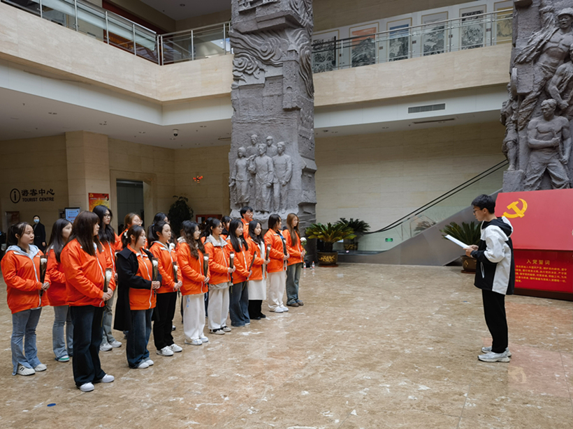 梨花风起正清明,祭奠英烈且当行。为深入贯彻党的二十大精神,缅怀革命先辈的丰功伟绩,传承红色基因,弘扬爱国主义精神,4月2日,公共管理学院党总支赴连云港市革命纪念馆开展“清明祭英烈 共铸中华魂”爱国主义教育活动。公共管理学院党总支副书记孙明珠,学院入党积极分子、星火青春公益团等各民族学生共计20余人参加,本次活动由学院学生会主席段梓轩主持。