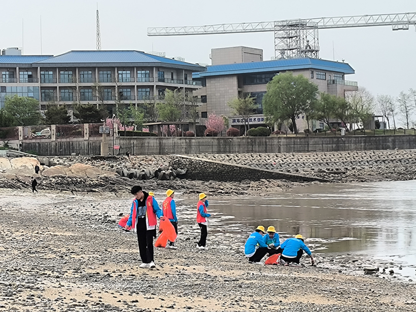 天海湛蓝、空气清新。下午的海州湾国家海洋公园阳光正好,春意正浓。以青年教师、学生干部为主体的“艺旅阳光”近60名志愿者,穿着统一的志愿服装,手持垃圾袋、铁夹等工具,开展清洁海岸工作,一个个弯腰蹲下的背影,一滴滴落下的汗水,大家相互协作,一同作业,成为海滩上的一道美丽风景。