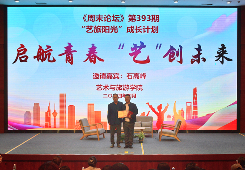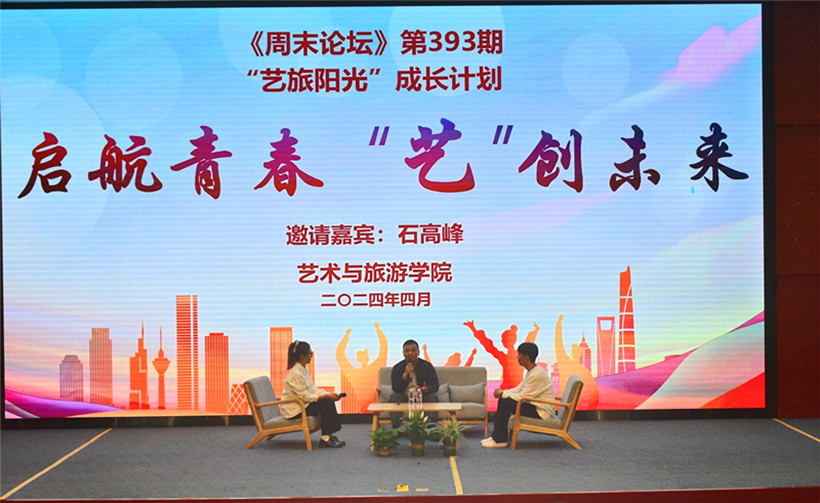 为全面落实党中央、国务院对高校毕业生就业创业工作的决策部署,激发在校生的创新精神和就业热情,4月19日,艺术与旅游学院在图书馆报告厅举办第393期《周末论坛》——启航青春 “艺”创未来。本次论坛主讲嘉宾是中创物流(连云港)有限公司党支部书记、总经理助理石高峰,艺术与旅游学院院长赵子昂、全体辅导员以及100余名21、22级学生参加本次活动。