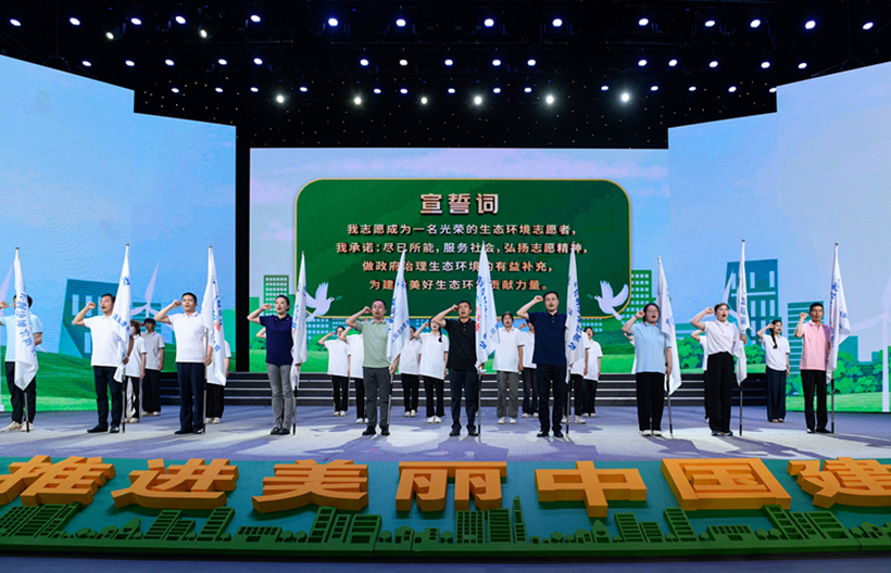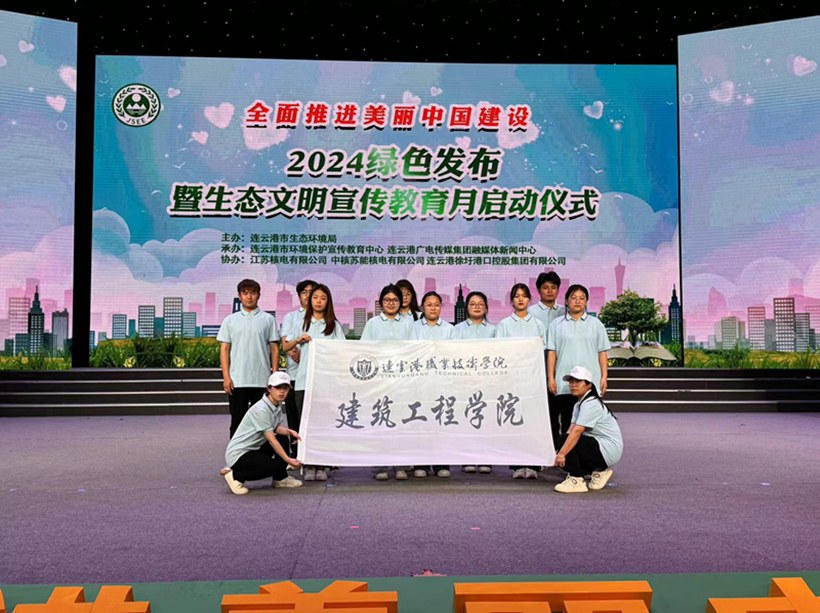 2024年连云港绿色发布暨市生态文明宣传教育月启动仪式于6月4日在市广播电视台一号演播室举行。连云港职业技术学院建筑工程学院“连之心”志愿者团受邀参加活动。