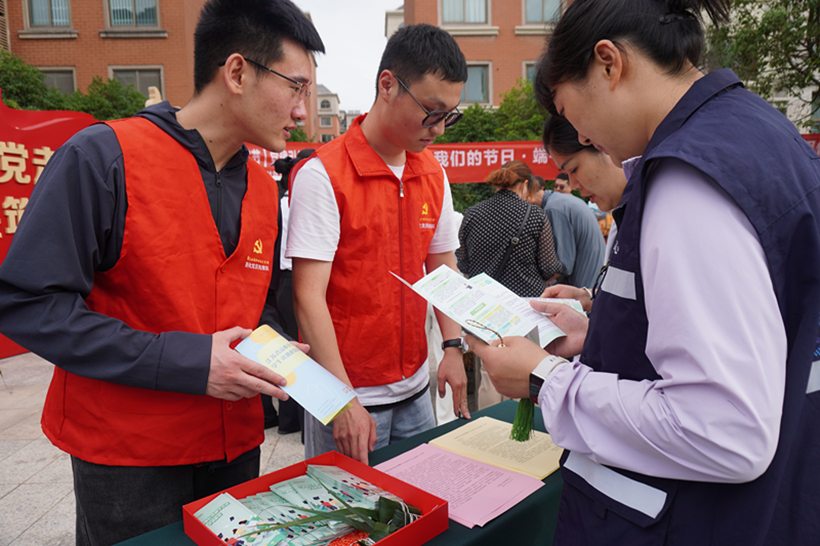 在活动现场,资助宣传志愿者和社区居民们一起包粽子、给小朋友们双手沐兰汤、额头点雄黄、系上五彩绳,现场制作书签,发放全国学生资助管理中心资助宣传手册,向社区居民宣讲生源地信用助学贷款、新生入学“绿色通道”、国家助学金、勤工助学、临时困难补助等国家和学校的各项资助政策。