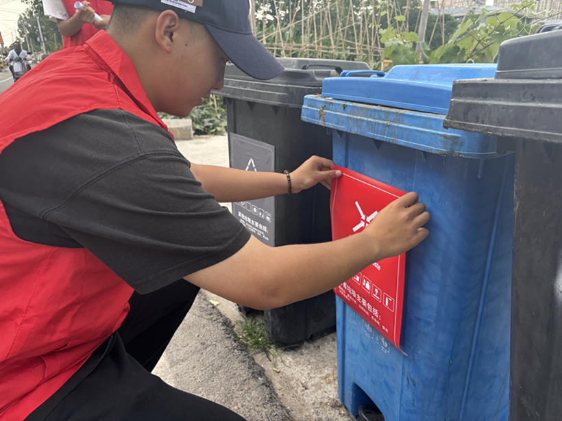 志愿者还对社区的垃圾分类现状进行实地调查,发现该社区垃圾分类存在较多问题,如垃圾桶未做到分类使用、垃圾桶上的分类标志被撕毁或者被遮挡住等。针对这些问题,志愿者们迅速行动,与社区居民一起修复了垃圾分类标志,把垃圾桶按照规定进行分类摆放,并在社区公示栏张贴了详细的垃圾分类海报。同时,志愿者们还向围观的居民分发垃圾分类宣传手册,进一步普及垃圾分类知识。