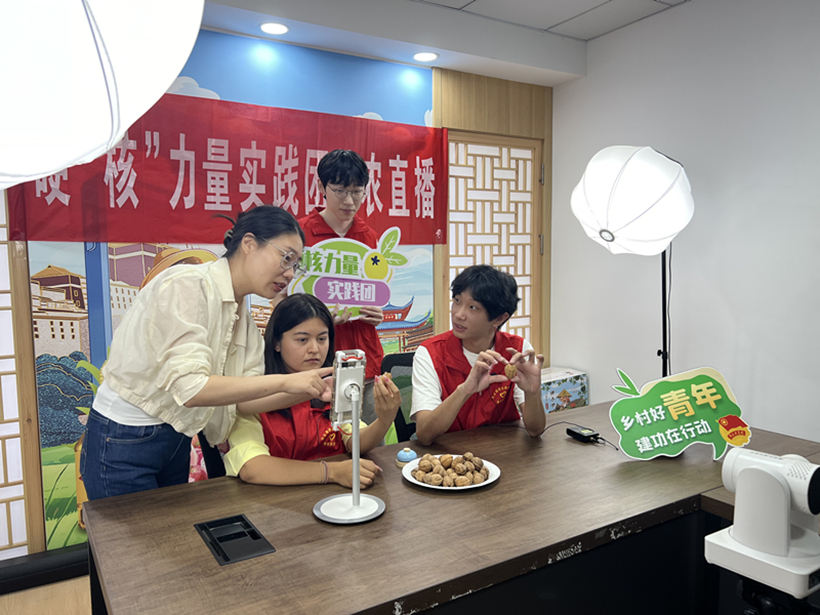 直播带货作为一种新兴的营销模式,已经成为推动农产品销售和乡村振兴的重要手段。8月31日,实践团走进连云市农民合作社服务中心乡村振兴直播间,开展了“和田核桃”为主题的直播带货学习活动。主播老师向同学们讲解了直播带货的技巧,特别面对镜头烘托气氛这一环节,给予了同学们详细的指导和建议。接下来穆乃外尔罕和她的同学们克服面对镜头的紧张情绪,在镜头前展示了新疆和田恰哈村的核桃,也逐渐适应并享受直播带货的过程。