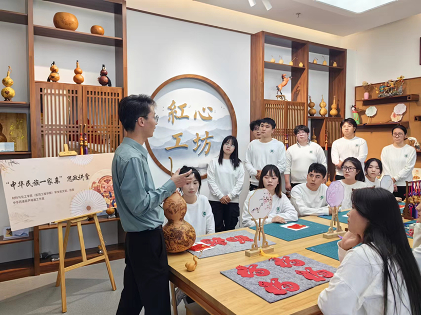 学院组织学生代表前往中华药港展示馆开展“看产业变迁 庆祖国华诞”参观实践活动。通过参观了解我市医药产业的发展历程、中华药港的发展规划以及产业体系,切身感受我市医药产业在国家强盛与民族复兴道路上的发展巨变。在新医药产业党建联盟阵地“星火剧场”,学院组织各民族学生代表开展“光影颂华章 同心庆华诞”迎国庆观影活动。学院各民族学生代表欢聚一堂,观看爱国主义教育影片《我和我的祖国》,影片展现了新中国成立以来不同历史时期、不同行业领域普通中国人的爱国情怀和奋斗精神,在观看过程中同学们不仅深刻感受到中华民族大家庭的温暖和力量,也进一步增强了民族凝聚力和向心力。在党建联盟阵地“红心工坊”开展“中华民族一家亲思政讲堂”活动,连云港新兴青年“非遗传承人”赵新荣老师为同学们介绍了葫芦烙画的历史渊源和基本技法,让同学们近距离感受非遗文化葫芦烙画的独特魅力,在老师的指导下,从构思到制作,同学们一丝不苟,用传统技艺表达对祖国的深情热爱。