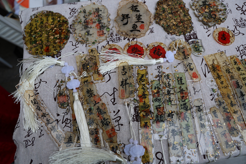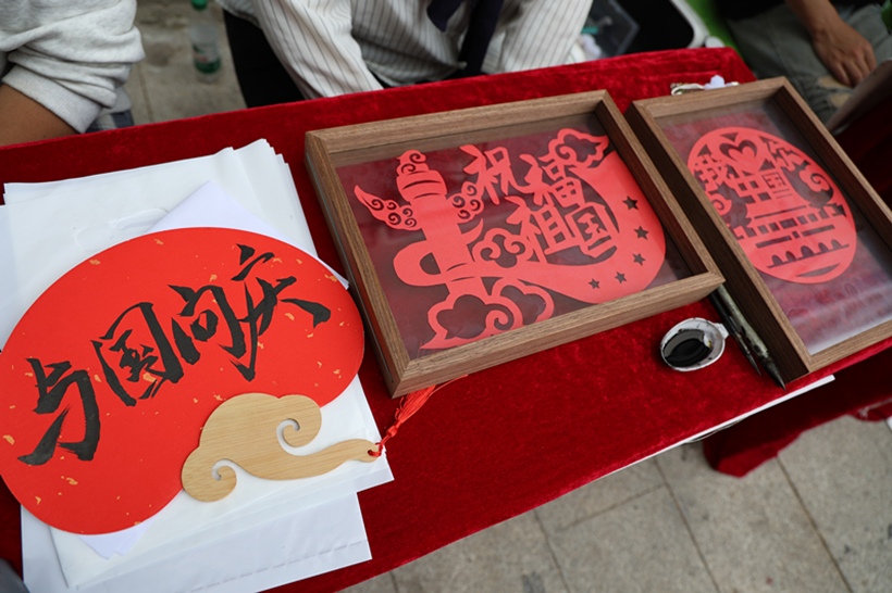 9月30日,“艺旅阳光”非遗传习社师生来到海州区海宁社区,参加海宁社区“国风古韵•‘潮’起非遗”社区文创艺术节活动。社团成员们向现场观众展示了书法团扇、锦灰堆、漆扇、剪纸等文创作品的制作过程,并向大家详细介绍了多种非物质文化遗产的相关知识。“与国同庆”、“祝福祖国”、“锦绣中华”等国庆主题文创产品,表达了师生们对祖国的热爱之情。在活动现场的互动体验区,现场观众在社团成员的指导下,亲自尝试制作漆扇、剪纸等文创产品,感受非遗文化的独特魅力。一位参与体验的居民表示:“以前只是在电视上看到过漆扇,今天自己动手尝试,才发现这其中蕴含着如此深厚的文化底蕴和精湛的技艺。”