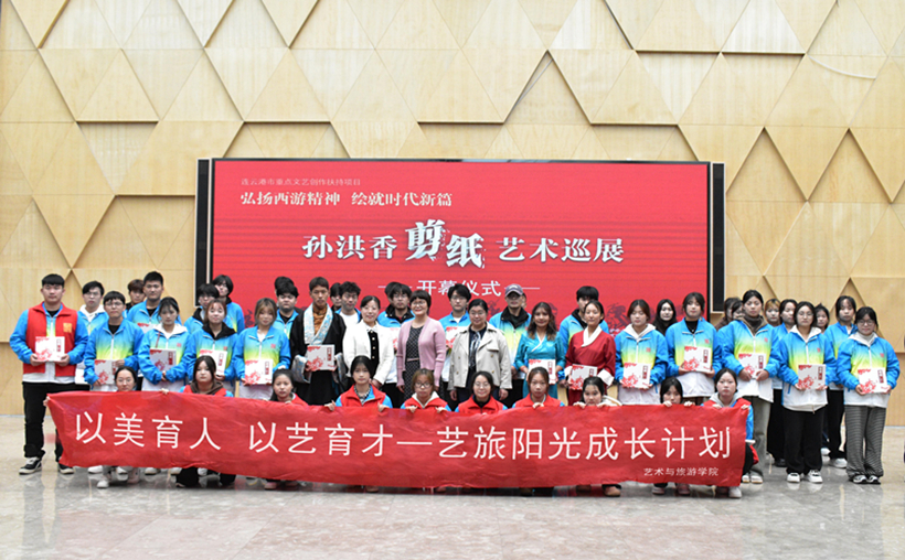 为深入学习贯彻习近平新时代中国特色社会主义思想和党的二十届三中全会精神,以美育人、以艺育才,将中华优秀传统文化融入学生“大思政”教育,11月13日上午,艺术与旅游学院组织50余名艺术专业师生及少数民族学生代表到连云港市文化馆参观由江苏省民间文艺家协会、连云港市委宣传部、市文广旅局、市文联共同主办的“弘扬西游精神 绘就时代新篇”——孙洪香剪纸艺术巡展开幕式,并在现场开展活动指引、秩序维护等志愿服务活动。
