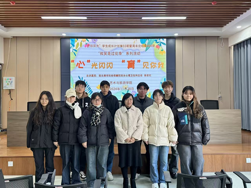 为进一步普及心理健康知识,帮助学生更好地应对学习生活中的压力与挑战,11月27日下午,艺术与旅游学院在“一站式”学生社区发展中心开展“心”光闪闪 “育”见你我——“艺旅阳光”学生成长计划第55期暨周末论坛第404期“微笑走过花季”系列活动。此次讲座由连云港市妇幼保健院妇女心理卫生科主任徐世红主讲。