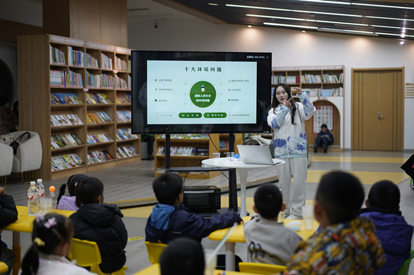 活动伊始,志愿宣讲员以近几年水资源浪费和污染严峻的现象为切入点,向小朋友们生动地介绍了世界十大环境问题以及我国水资源现状。通过生动的案例和具体的数据,让小朋友们深刻认识到保护水资源的重要性,并引导他们理解“环保”不仅仅是一个书本上的概念,更是守护生命之源、维系生态平衡的坚固防线。为了加深小朋友们对环保知识的理解和记忆,志愿宣讲员还组织了一场知识问答游戏,小朋友们积极参与,争相抢答,现场气氛热烈。