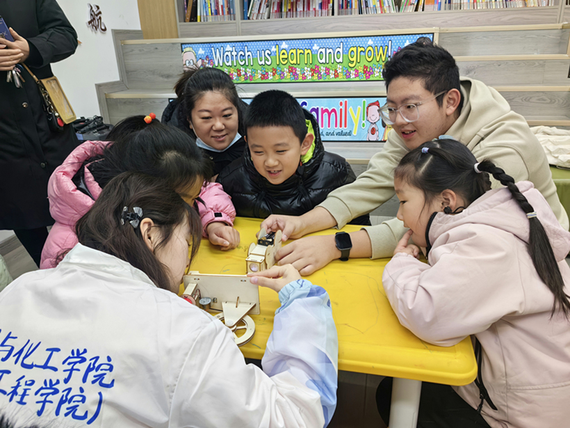 为促进学生德智体美劳“五育并举”全面发展,广泛开展劳动教育实践活动,提升学生社会实践能力,12月22日,材料与化工学院(医药工程学院)绿色先锋志愿服务队在文昌社区城市书房面向社区小朋友,举办“奇趣实验故事会”科普小课堂活动。