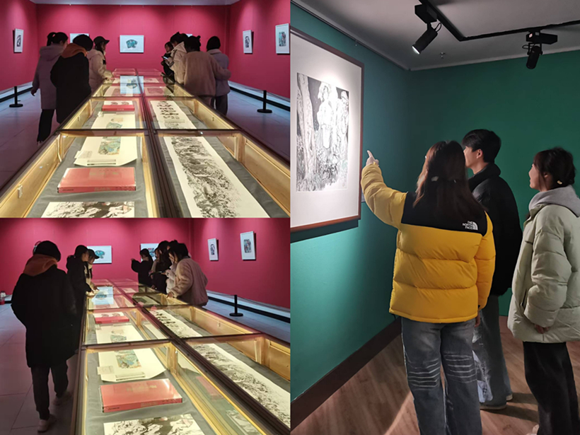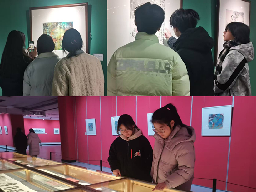 活动当天,美术馆内正在展出“坐观山海——祁恩进中国画作品展”。一走进展览大厅,同学们就被一幅幅精美的作品所吸引。画作中山海相依,气势磅礴,既有大自然的雄浑壮美,又蕴含着画家对自然与人生的深刻思考。同学们不时驻足欣赏,细细品味每一幅作品的独特之处,讨论交流作品的技法和所蕴含的意境。同学们表示,这次活动让他们对艺术有了更深刻的理解和认识,激发了他们对艺术的追求,更在心灵深处感受到了艺术的魅力和力量。