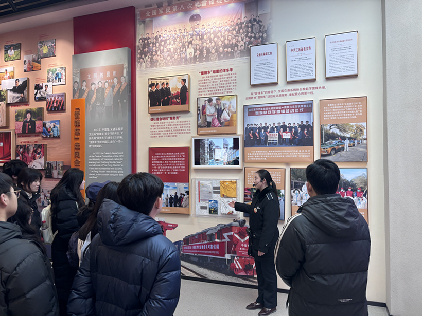 在雷锋车事迹陈列馆,团员青年们怀着崇敬的心情,认真聆听讲解员讲述雷锋车组的先进事迹,仔细观看陈列的图片、实物和文献资料,生动再现了雷锋车组“宁愿自己千般苦,不让旅客一时难”的奉献精神和“为人民服务”的宗旨意识,深刻感悟雷锋车组坚守初心、无私奉献的崇高精神。参观结束后,同学们纷纷表示,要以雷锋车组为榜样,认真学习雷锋精神,深刻把握雷锋精神的时代内涵,将雷锋精神内化于心、外化于行,积极投身志愿服务,用实际行动践行雷锋精神。