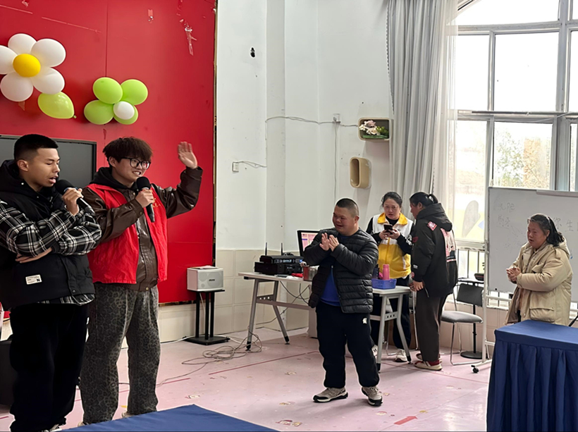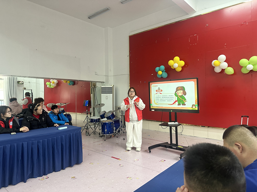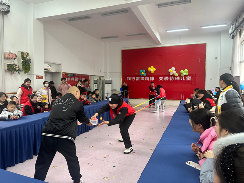 馨康宝贝融合园是一所为孤独症、脑瘫及唐氏综合征儿童提供康复教育的特殊教育机构。在这里,雷锋精神同样以温暖而适配的方式浸润童心,志愿者们化身“雷锋故事讲述者”,通过简洁的肢体语言和生动的表情,向孩子们传递“雨中送伞”“义务劳动”等经典故事片段。面对孩子们澄澈的目光,志愿者们放缓语速,用“帮助”“微笑”“分享”等词语串联故事内核。他们或许无法复述故事,但专注的眼神已是最好的回应。现场还特别设计了合唱环节,志愿者与孩子们共唱《学习雷锋好榜样》,轻快的节奏伴着童声回荡,纯真的笑脸与春日的暖阳交相辉映。