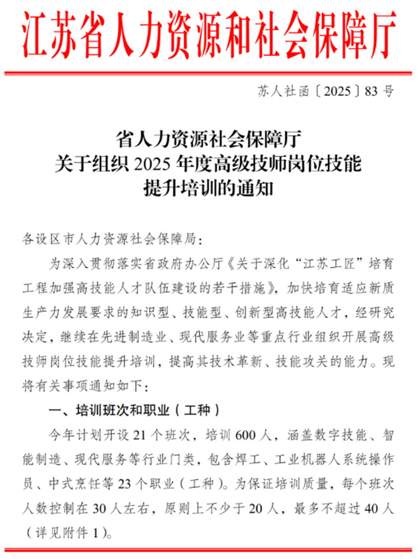 4月25日,机电工程学院成功获批2025年江苏省“工业控制网络技术”高级技师岗位技能提升培训项目。该项目由江苏省人力资源和社会保障厅、财政厅联合组织实施,旨在加强高技能人才队伍建设,为智能制造领域培养创新型技术骨干,助力区域产业高质量发展。