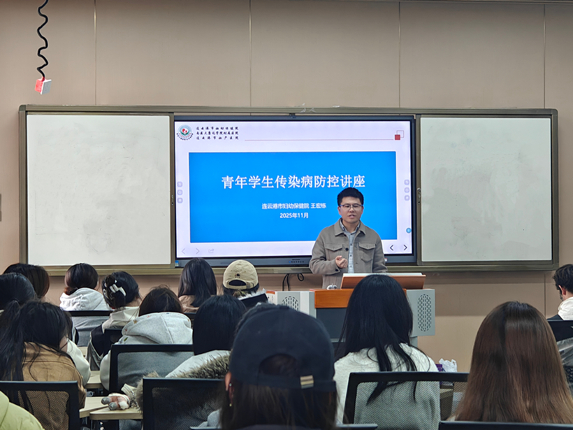 为进一步筑牢校园健康安全防线,增强我院学生对重点传染病的防控意识,树立“自身健康第一责任人”的理念,11月14日下午,艺术设计学院在多功能教室举办“艺旅阳光”学生成长计划第79期暨周末论坛第418期——“为青春设防 为健康筑墙”专题讲座。本次活动特邀连云港市妇幼保健院院感处处长王宏栋医生担任主讲,学院全体辅导员及60余名学生参加。