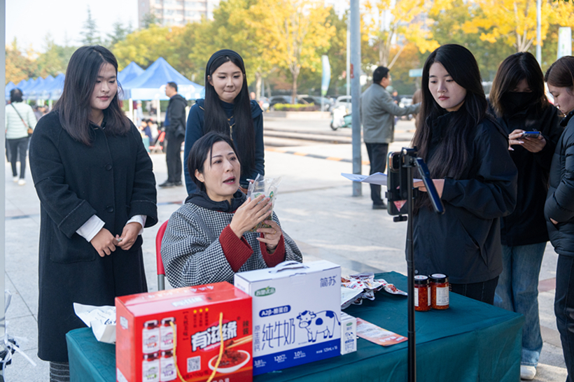 近日,由市委组织部牵头、十余家单位协同打造的 “山海甄选・连天下”农业大集在海州区红船广场拉开帷幕。旅游与传媒学院网络直播与运营专业学子积极参与本次惠民助农盛会,深度参与活动策划、线上直播、现场互动、流量运营等核心实践环节,在真实场景中全面锤炼专业技能,展现了出色的专业素养与实践能力。