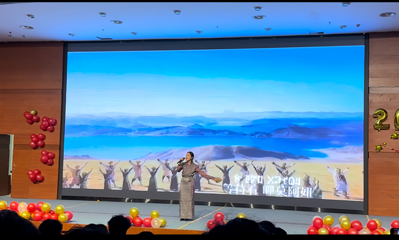 临近尾声,石新如老师惊艳亮相,将晚会氛围推向高潮。她以一首轻松愉快的《生日祝福歌》压轴登场,台下师生纷纷起身,跟着旋律一同合唱,歌声汇聚成爱的暖流,回荡在现场的每一个角落。