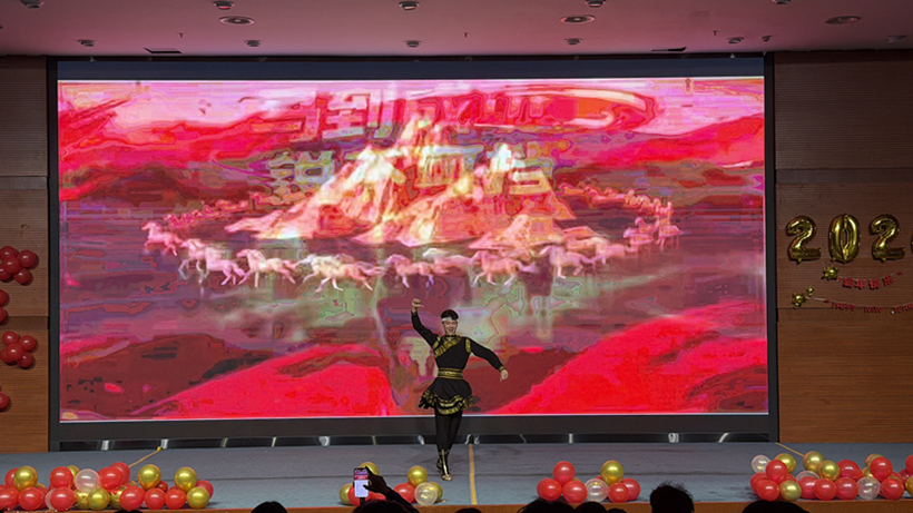 舞蹈表演环节同样亮点纷呈,为晚会注入了满满的青春活力。Fly街舞社带来的多个节目将力量与柔美完美融合,队员们动作整齐划一、舞姿动感炫酷,精准的节奏把控和极具张力的舞台表现,让现场观众感受到了街舞文化的独特魅力。来自新疆的艾克同学带来民族舞《黑走马》,台下尖叫声不断,赢得了全场师生的一致好评。