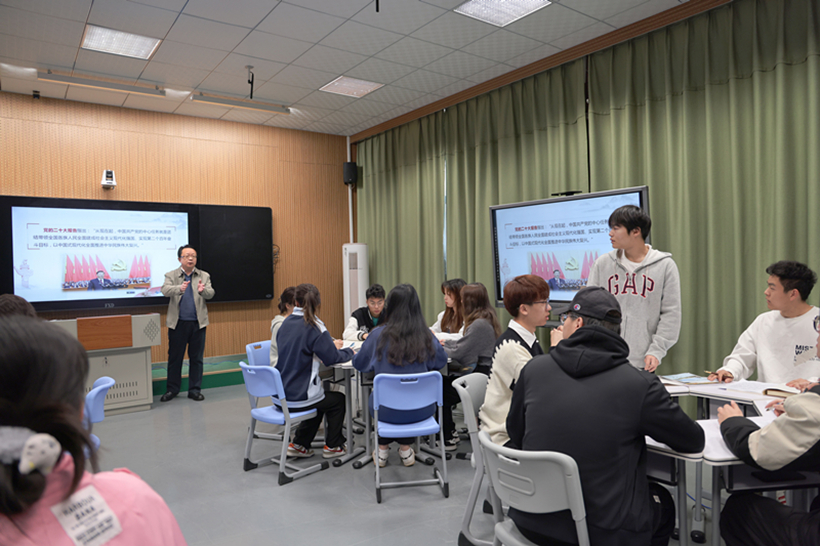“同学们想一想,我们为何能走出不同于西方的现代化之路,而且这条路走得通、走得好?”授课过程中,骆汝九旁征博引、循循善诱,引导同学们深入思考中国式现代化道路之所以能够成功的历史逻辑,课堂气氛活跃、互动频繁。他指出,一百多年来,中国共产党带领中国人民蹚出这条成功的现代化道路,其中最宝贵的经验是,一定要找到适合本国国情的发展道路,照搬照抄从来不会取得成功。中国式现代化是人口规模巨大、全体人民共同富裕、物质文明和精神文明相协调、人与自然和谐共生、走和平发展道路的现代化,开创了不同于西方资本主义现代化的全新路径,打破了“现代化等于西方化”的迷思,为人类对更好社会制度的探索提供了中国方案、贡献了中国智慧。