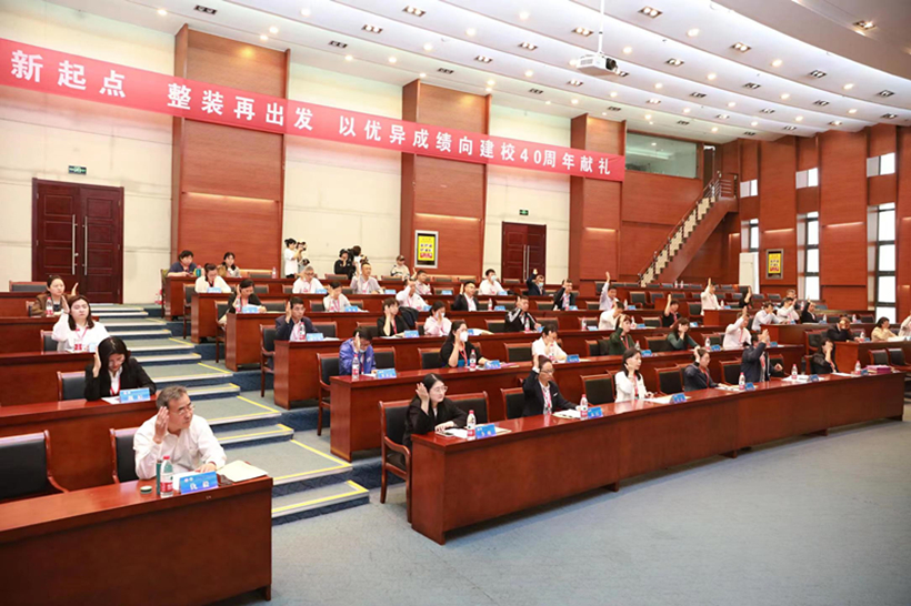 大会以举手表决的方式通过了会议决议。大会号召,站在学校发展的历史新起点上,接过历史的接力棒,全体教职工要牢牢把握时代赋予的宝贵机遇,紧紧围绕学校第三次党代会确立的发展目标,厉兵秣马再奋进、重整行装再出发,以奋斗的姿态激扬生命,不负时代不负华年,携手并肩、昂扬向前,在职业教育前途广阔、大有可为的历史洪流中奋楫搏击,用优异成绩向建校40周年献礼!