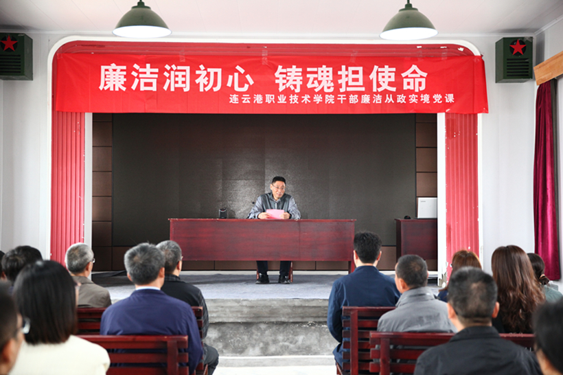 在讲解员的引导下,大家重走英雄守岛之路、参观开山岛“夫妻哨”事迹陈列馆、重温入党誓词……“无论岛上的条件多么艰苦、日子多么清苦,面对形形色色的歪门邪道、面对巨大的利益诱惑,王继才始终“百毒不侵”、保持凛然正气,将一个个邪恶势力和不法分子“拒之岛外”,王继才用一生的清廉本色为广大党员干部树立了榜样和标杆。……”在开山岛礼堂,校党委书记刘江船以《廉洁润初心 铸魂担使命》为题给大家上了一堂“党味”浓、“廉味”足的干部廉洁从政实境党课。刘江船强调,全体党员干部要牢记总书记“坚定理想信念、陶冶道德情操、涵养扎实学识、勤修仁爱之心”的谆谆教诲,结合岗位实际,弘扬守岛精神,学习榜样力量,树牢底线思维,在任何时候都能稳得住心神、管得住行为、守得住清白。