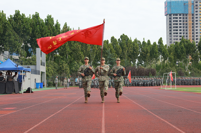 骆汝九作军训总结讲话,首先代表学校向支持我校军训工作的全体承训教官、各营队教导员、指导员表示衷心的感谢,向完成本次军训各项任务的全体同学表示亲切的慰问,向获得表彰的先进集体、优秀教官、训练标兵等表示热列的祝贺,并对同学们提出了四点希望:一是希望同学们以德修身,涵养心系家国的情怀。要把正确的道德认知、自觉的道德养成、积极的道德实践紧密结合起来,不断修身立德,打牢道德根基。二是希望同学们以志正身,锤炼行稳致远的品质。在今后的学习生活中,要秉持“德才兼备、知行合一”的校训精神,树立远大理想志向,把个人发展和祖国命运紧密相连。三是希望同学们以学立身,筑牢逐梦远行的根基。在大学期间,要端正学习态度,及时填知识空白、补素质短板、强能力弱项。四是希望同学们以纪束身,树立遵守规矩的意识。要把军训过程中培养起来的一切行动听指挥的精神发扬光大,遵守校纪校规,做好自我管理,学会自主学习,以更强的纪律意识和更加积极的主人翁姿态妥善安排好自己的学习生活。