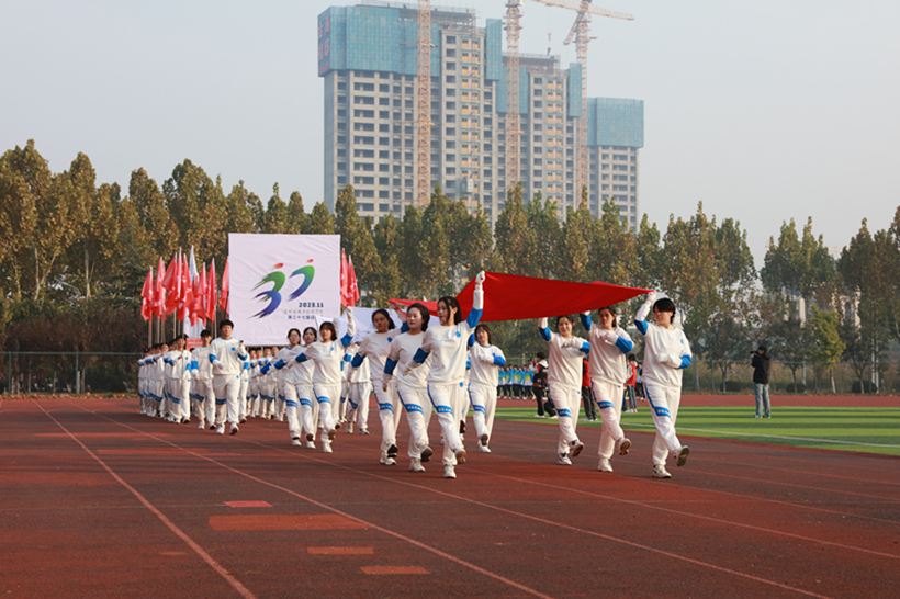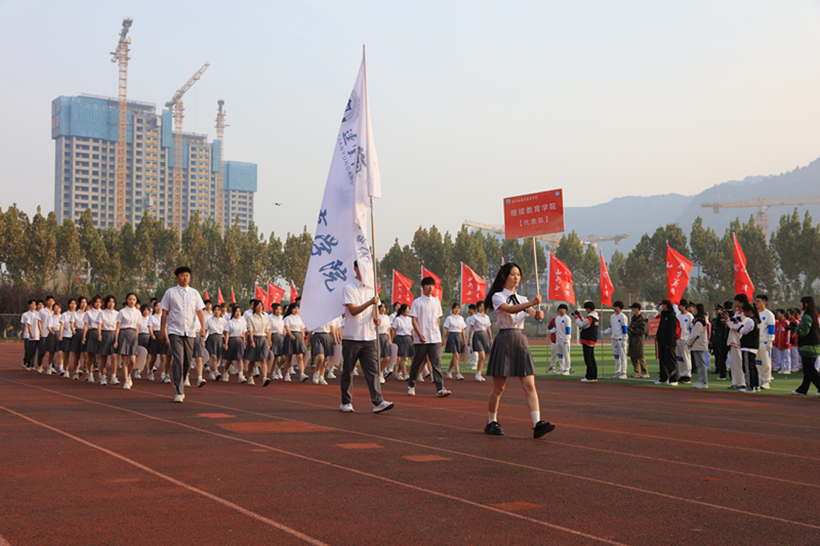 刘江船在开幕词中指出,近年来学校秉持德、智、体、美、劳五育并举、全面发展的教育理念,持续推动体育工作蓬勃发展,师生在各级各类赛事上屡创佳绩,体育教学工作取得一系列喜人成果,充分彰显了我校师生毫不畏惧、敢打敢拼的精神风貌。他强调,今年是学校建校40周年的喜庆之年,全体连职院人正秉承“德才兼备、知行合一”的校训精神,握好前行“方向盘”,跑出发展“加速度”。站在学校发展的新起点上,他希望同学们以青春之力量建设活力连职院,以青春之风采建设魅力连职院,以青春之奋斗建设动力连职院。以青春之我成就青春校园,合力奏响新时代最强的青春音符,同心谱写学校高质发展的华美乐章,共同铸就连云港职业技术学院的辉煌与荣光!