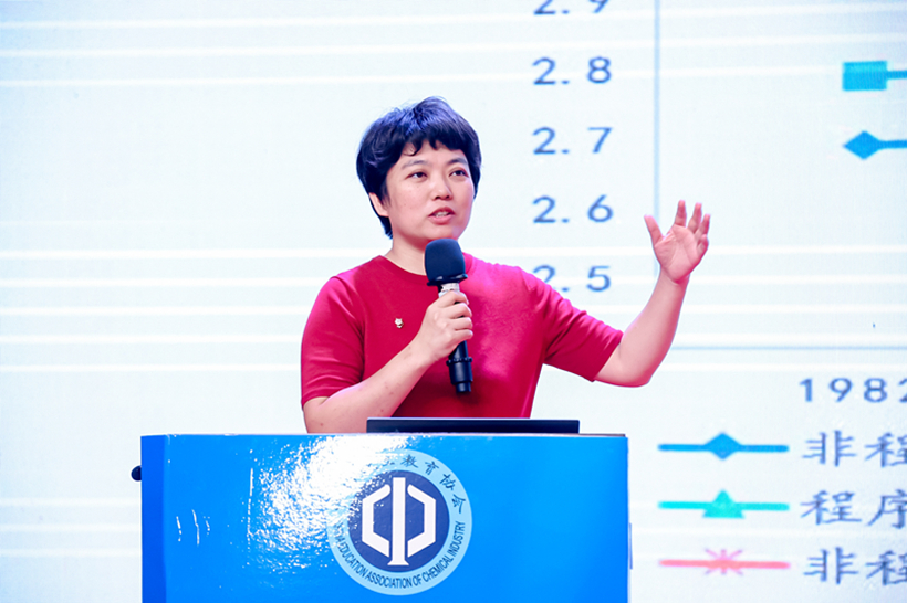 在13日上午的精细化工与医用中间体生产技术类专业委员会(精细化工方向)会议上,张萍以“基于产业学院的‘大化工人才’培养创新与实践”为题交流发言。
