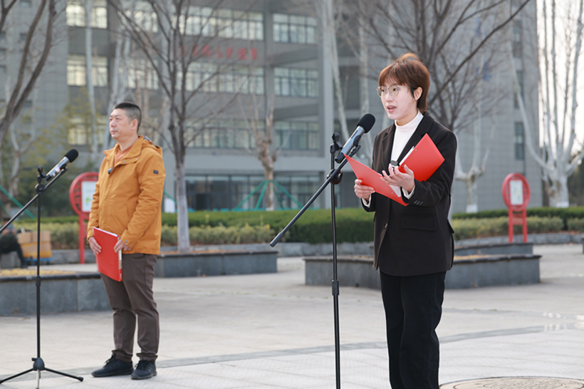 升旗仪式上,机电工程学院分团委副书记倪心怡同学作题为《以奋斗为笔以奉献为墨》的国旗下演讲。作为全国高校学生会组织“我为同学做实事”精品项目——“红齿轮”家电义务维修负责人,国家奖学金、省级“挑战杯”铜奖、市级创新创业大赛二等奖等奖项获得者,倪心怡号召同学们要以工匠精神雕琢专业技能,以志愿行动传递青春温度,让雷锋精神在实训车间与乡村振兴一线同频共振,绘就“技能报国”的青春画卷。